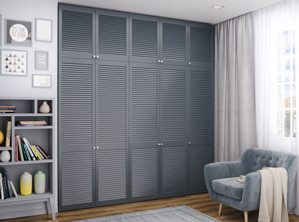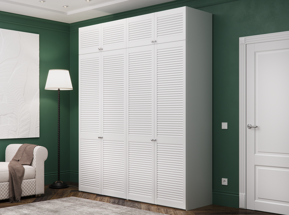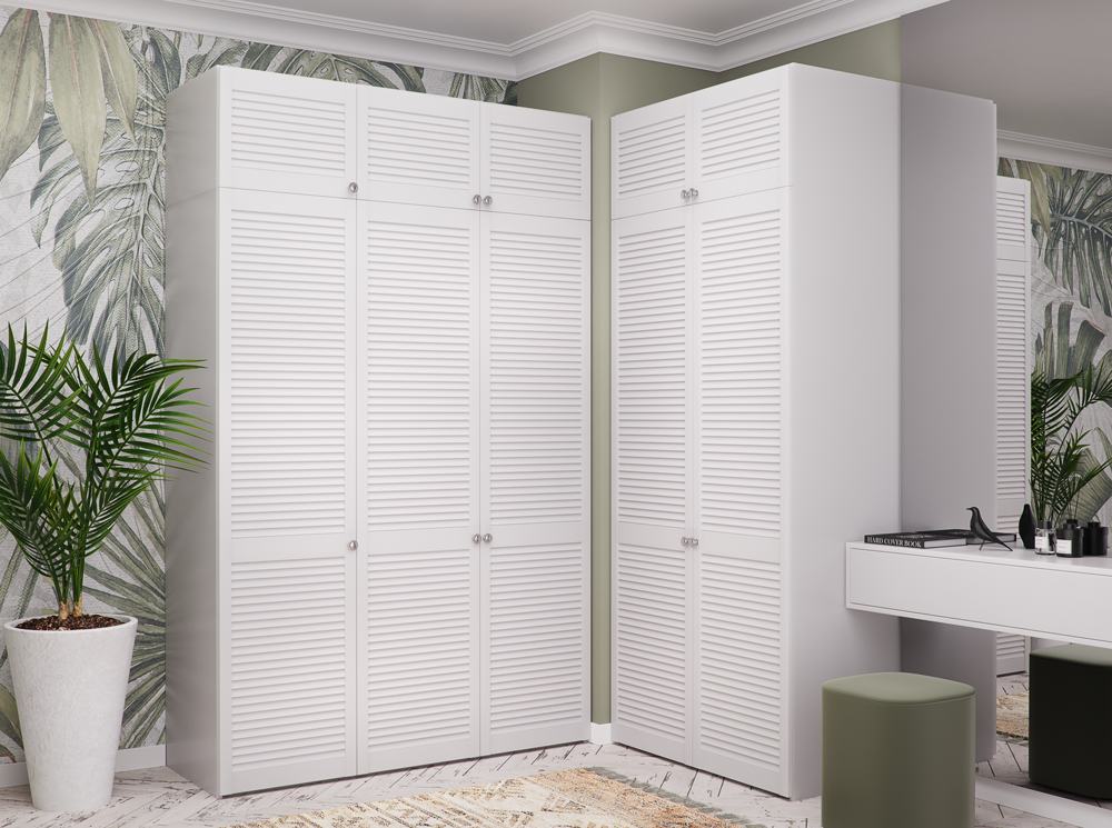Розпашна шафа Техас з жалюзійними фасадами стане прикрасою будь-якого інтер’єру. Фасади Техас виготовлені з натурального дерева і мають два кольори на вибір – білий або антрацит. Горизонтальні планки не тільки роблять інтер’єр цікавішим, але й забезпечують вентиляцію. Шафа Техас підійде до різних стилів дизайну, додавши елегантності кожному з них. Ви можете обрати розміри комплекту за своїм смаком, комбінуючи різні модулі.